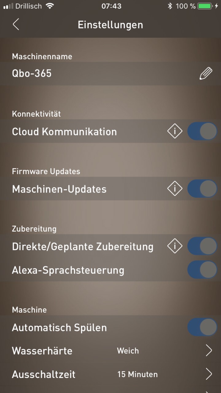 Für mich war das QBO-System und die You-Rista Maschine selber neu, so dass ich mich erst einmal mit dieser ein bisschen einarbeiten musste, bevor ich mich gleich intensiv mit der Sprachsteuerung beschäftigte. Ich hatte erst Probleme die Kapselmaschine mit meinem WLAN zu koppeln, habe es dann nach einem Telefonat mit dem Support und vielen Versuchen aber doch irgendwann geschafft. Die Verbindung mit dem heimischen WLAN-Netzwerk ist Pflicht für die Nutzung der QBO-Maschine mit Amazon Alexa, da darüber auch ein Software-Update auf die Kapselmaschine aufgespielt wird. Nachdem das Firmware-Update (1.40) aufgespielt war, galt es Alexa den QBO-Skill beizubringen. Dieser war in der Alexa-App schnell gefunden und installiert. Als nächstes musste noch die Alexa Sprachsteuerung in der QBO-App aktiviert werden, denn nur so kann Alexa auch die QBO-Maschine finden. Ihr könnt die Funktion in der QBO-App, bei den Maschinen-Einstellungen > Alexa Sprachsteuerung aktivieren. Nachdem an der YOU-RISTA und in den Apps alle Vorkehrungen getroffen waren, konnte der Test endlich starten.