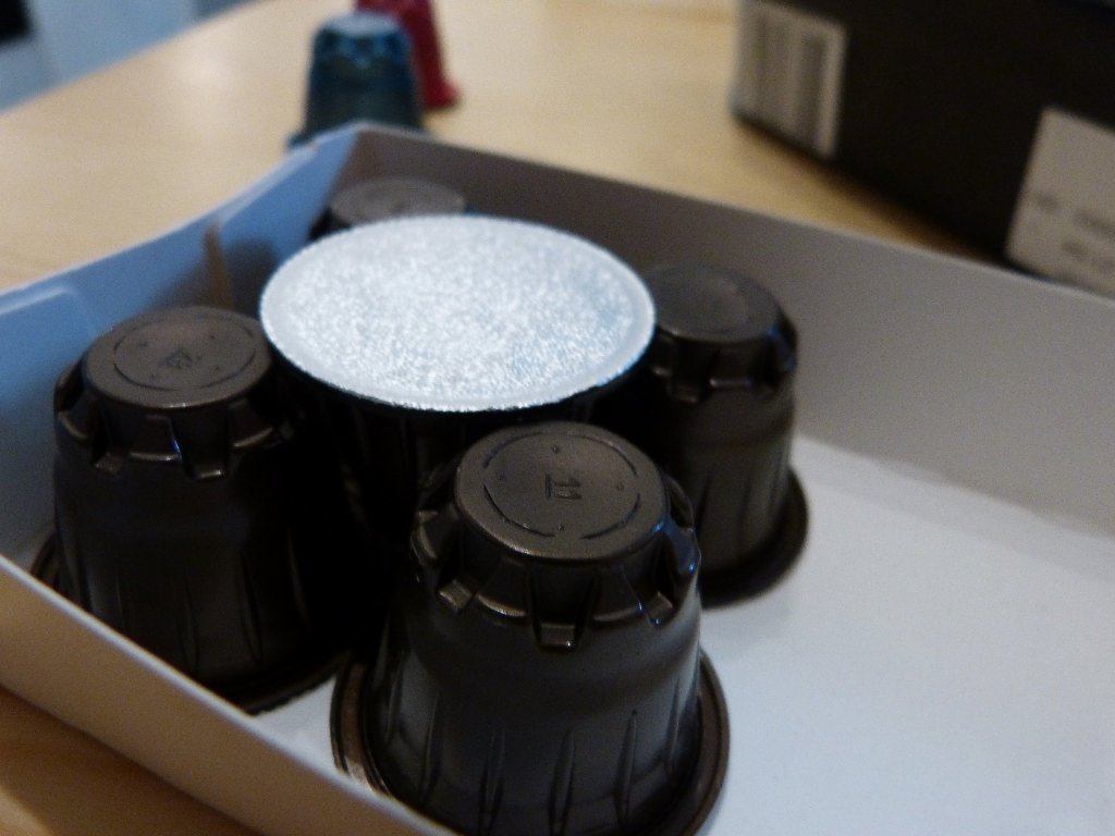 Aroma ist wichtig. Nicht zuletzt aus diesem Grund sind Nespresso-Kapseln aus Aluminium. Plastik ist halt nicht vollkommen aromadicht – Geschmack geht über Zeit verloren. Verpackungen aus Papier kommen daher gar nicht in Frage. Da die Cafet-Kapseln aus Plastik sind, hat es mich gewundert, weshalb der Hersteller nicht konsequenter Weise auch den Verschluss in Plastik herstellt? So vermeidet man, dass kleinste Aluminiumabrisse, die sich unter Druck lösen könnten, mit dem Kaffee in die Tasse gelangen. Bei einem Plastikdeckel würde das Gesundheitsrisiko, das Aluminium mit sich bringt, gar nicht erst auftreten können. Nun denn… Die Sortenauswahl ist für „Standard“ völlig in Ordnung (auch wenn viele meiner Gäste abends einen koffeinfreien Espresso bevorzugen). Geschmacklich sind die Cafet-Sorten für die Nespresso ohne Beschwerde. Aromatisch und vollmundig heben sie sich in ihrer Intensität deutlich von anderen Discounter-Kapseln ab, die ich bislang testweise trinken konnte. Ich habe bei einem Preis von 1,79 € zugeschlagen und bereue dies in keinster Weise. Geschmack darf aber keine Frage des Preises sein, doch wenn beides stimmt ist der Deal perfekt. Bei den Cafet-Kapseln aller drei Sorten trifft dies für mich zu.